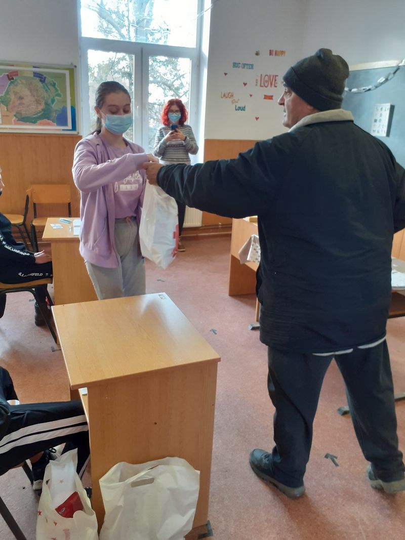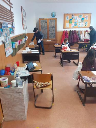 Komlósi Róbert és segítői osztották ki a csomagokat, a gyerekek nagy örömére!